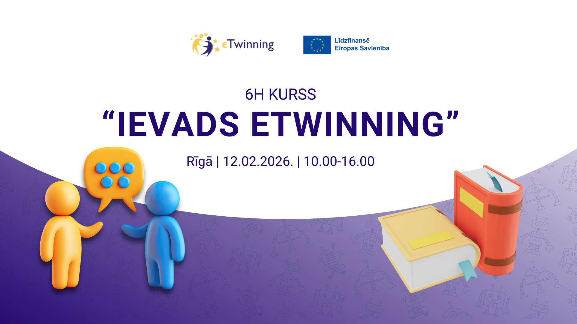eTwinning Nacionālais atbalsta dienests un eTwinning vēstnieki līdz 2. februārim aicina pirmsskolas pedagogus, atbalsta personālu vai pirmsskolas izglītības iestādes vadību pieteikties bezmaksas 6h klātienes kursam “Ievads eTwinning”, kas norisināsies Rīgā 2026. gada 12. februārī. Dalībai kursos var pretendēt jebkuras pilsētas vai novada pedagogs.