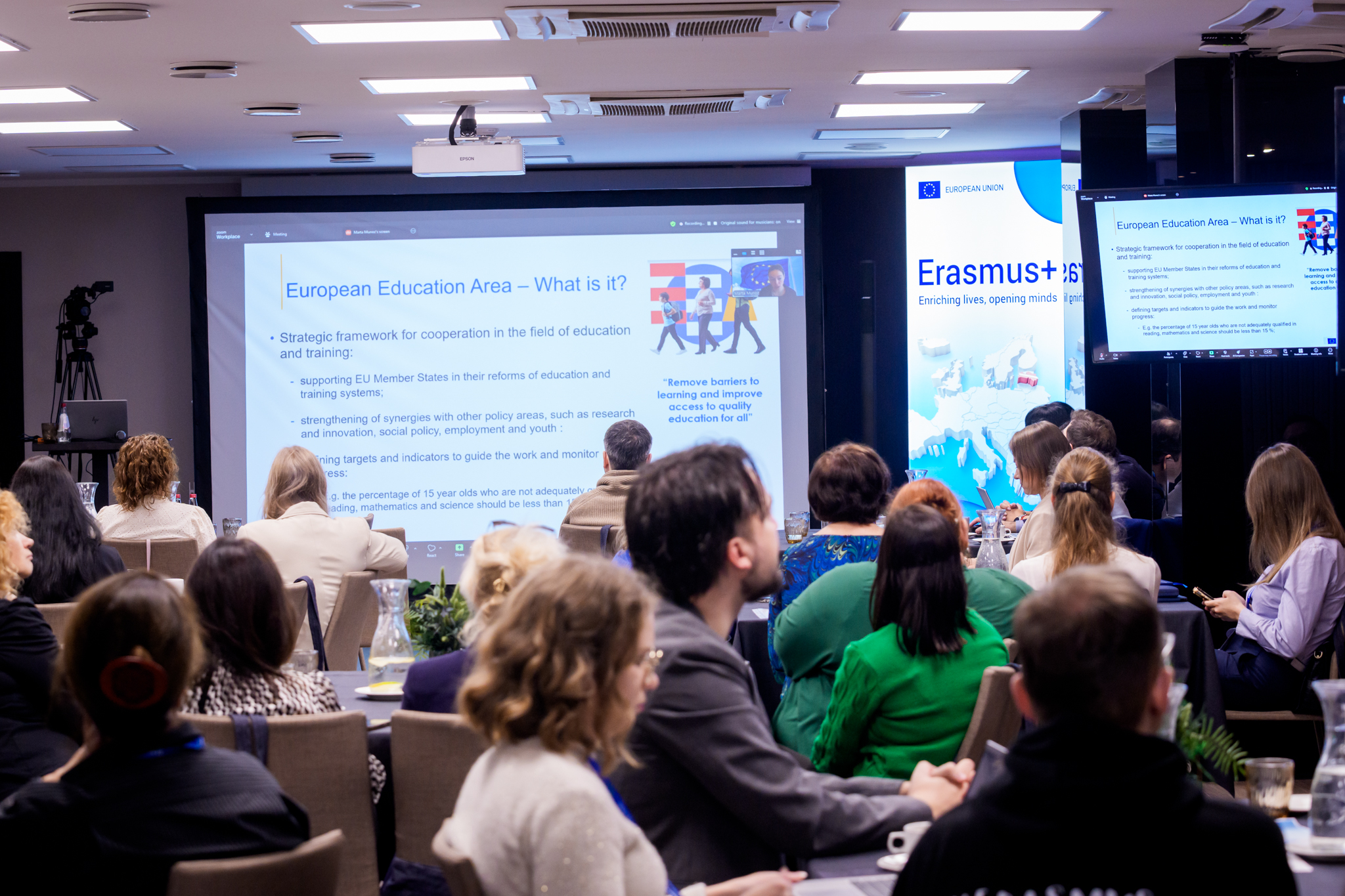 Semināra noslēgumā Gunta Jēkabsone un Kristīne Stiķe dalījās ar iedvesmojošiem Erasmus+ projektu piemēriem, parādot starptautiskās sadarbības pievienoto vērtību profesionālās izglītības stiprināšanā.