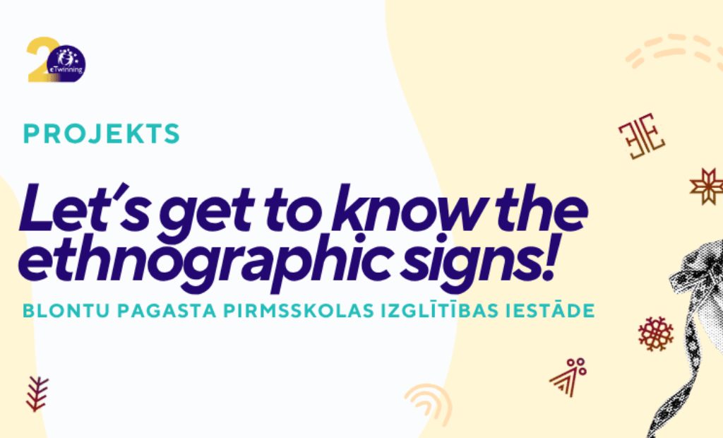 Projekta “Let’s get to know the ethnographic signs!” mērķis bija stiprināt nacionālo, valstisko un personisko piederību, iepazīstot Latvijas nemateriālo kultūras mantojumu – rakstu zīmes. Mūsu uzdevums ir saglabāt šīs zināšanas un nodot tās tālāk nākamajām paaudzēm, lai zīmju nozīme un to maģiskais spēks, ko tām piešķīra senlatvieši, nepazustu un nekļūtu tikai par skaistu dizaina rotājumu.