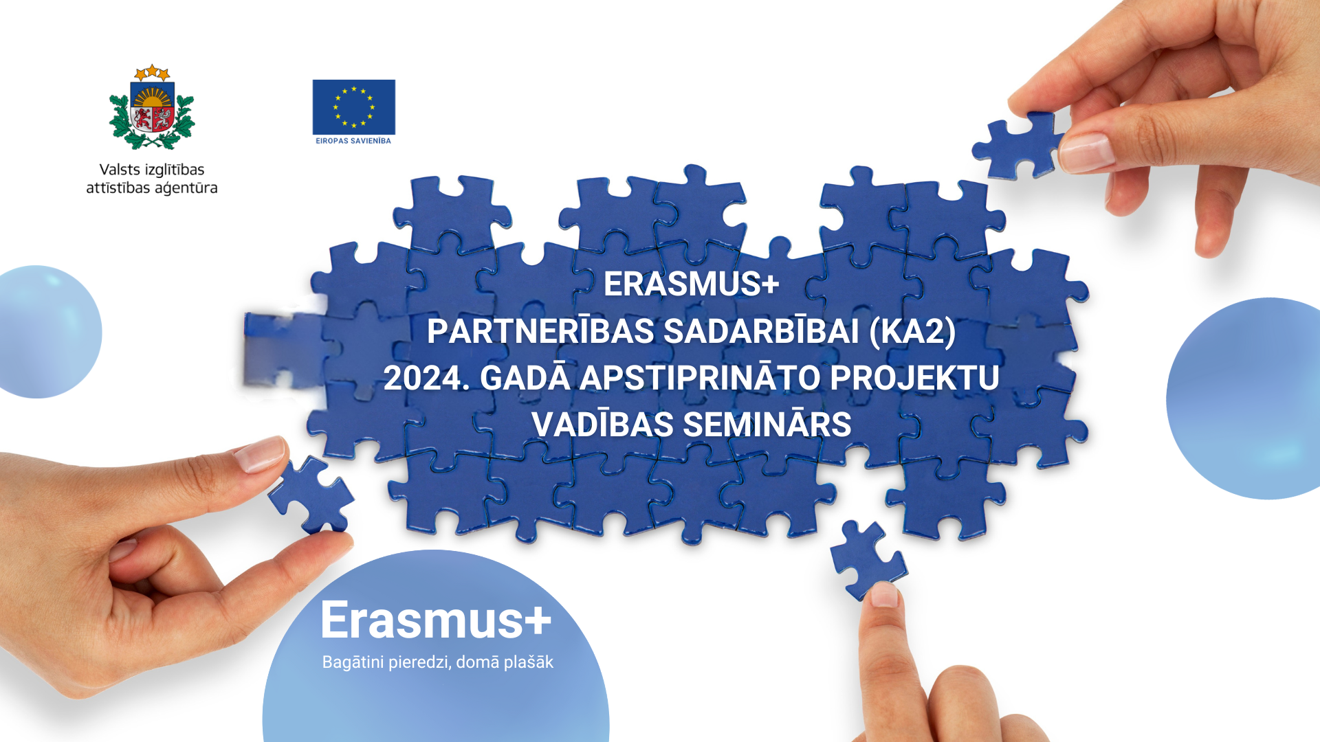 2025. gada 14. novembrī Erasmus+ nacionālā aģentūra izglītības, mācību un sporta jomā – Valsts izglītības attīstības aģentūra (VIAA) – organizē projektu vadības semināru 2024. gadā apstiprināto Erasmus+ Partnerības sadarbībai (KA2) projektu īstenotājiem.