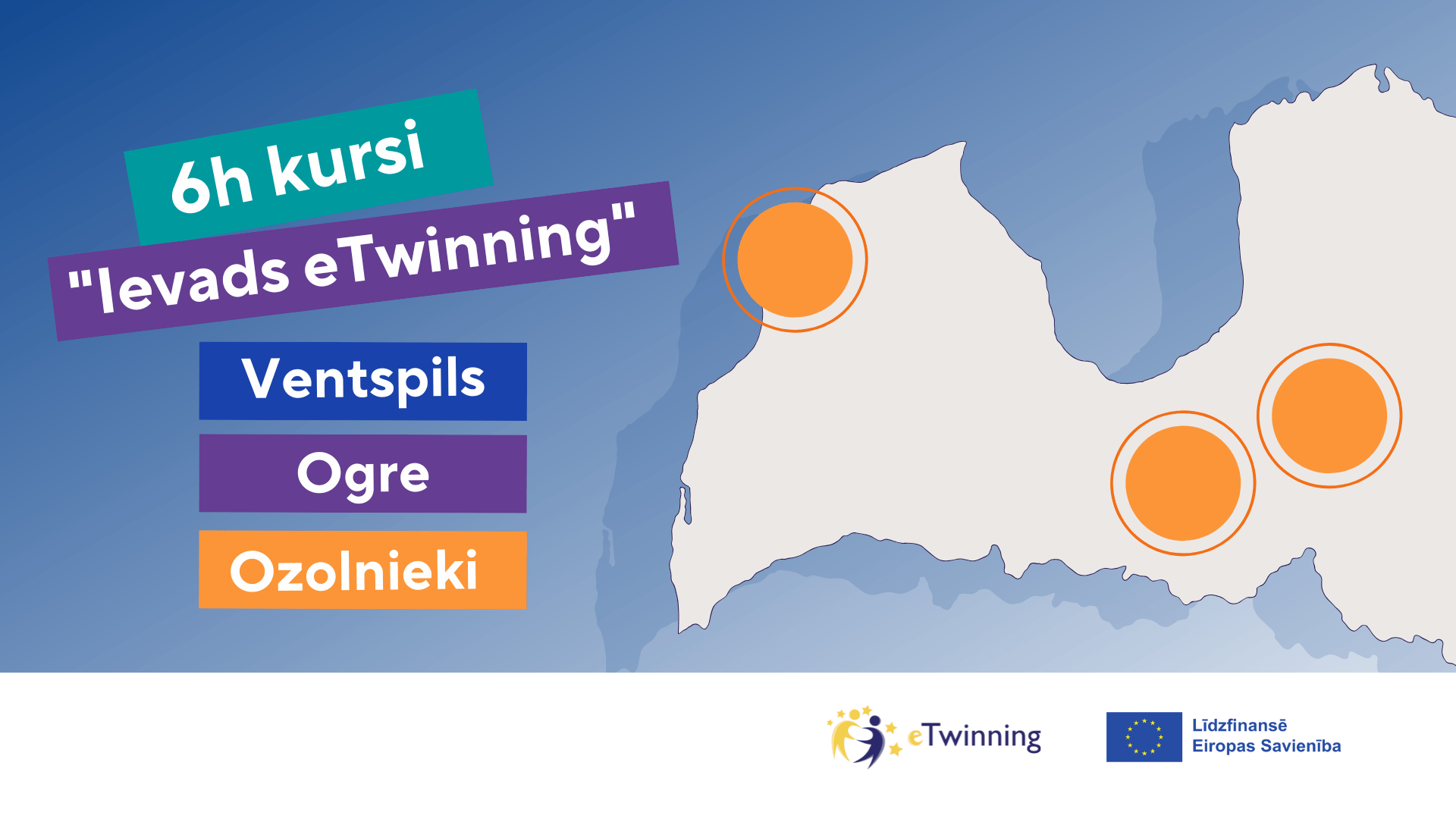 Līdz 8. oktobrim eTwinning Nacionālais atbalsta dienests un eTwinning vēstnieki aicina pedagogus pieteikties bezmaksas 6h klātienes kursiem “Ievads eTwinning”, kuri norisināsies Ogrē, Ozolniekos un Ventspilī no 22. līdz 24. oktobrim. Dalībai kursos var pretendēt jebkuras pilsētas vai novada pedagogs, kurš atbilst mērķauditorijas kritērijiem.