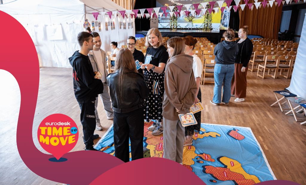 Plašāka informācija par pasākumiem Latvijā un Eiropā, konkursiem un raidierakstiem: https://timetomove.eurodesk.eu/lv/.