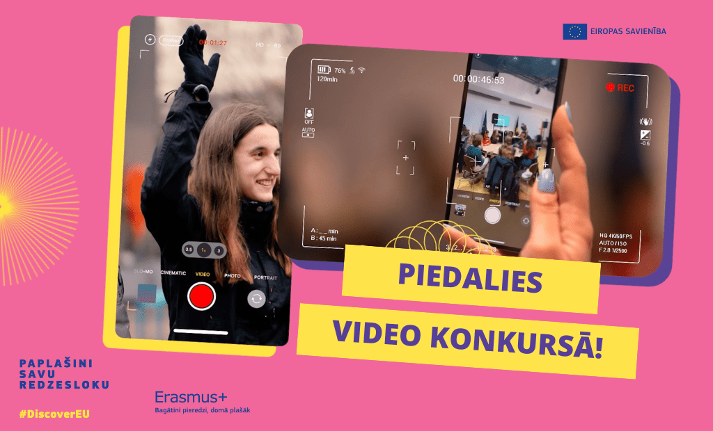 - Aizpildi pieteikuma veidlapu, norādot savus datus un YouTube saiti, līdz 2026. gada 16. janvārim: https://youth.europa.eu/discovereu/video-contest/participate